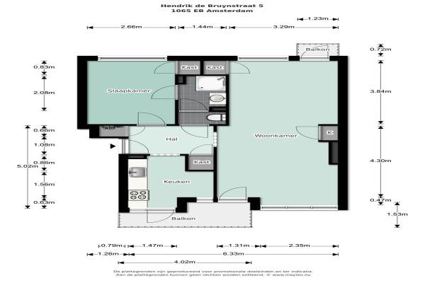Het adres van deze woning uit 1958 is Hendrik de Bruynstraat 5 te Amsterdam. Het pand heeft een oppervlakte van 60m² en heeft 2 kamers kamers waarvan 1 slaapkamers. De geschatte waarde van deze woning is € 199.000.