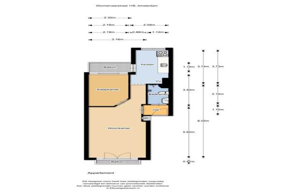 Het adres van deze woning uit 1916 is Wormerveerstraat 11-b te AMSTERDAM. Het pand heeft een oppervlakte van 40m² en een perceeloppervlakte van 40m² en heeft 2 kamers kamers waarvan 1 slaapkamers. De geschatte waarde van deze woning is € 320.000.