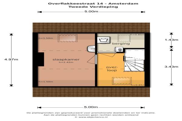 Het adres van deze woning uit 1931 is Overflakkeestraat 14 te Amsterdam. Het pand heeft een oppervlakte van 84m² en een perceeloppervlakte van 97m² en heeft 4 kamers kamers waarvan 3 slaapkamers. De geschatte waarde van deze woning is € 375.000.
