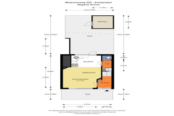 Het adres van deze woning uit 1936 is Meteorenweg 225 te Amsterdam. Het pand heeft een oppervlakte van 77m² en een perceeloppervlakte van 105m² en heeft 4 kamers kamers waarvan 3 slaapkamers. De geschatte waarde van deze woning is € 298.000.