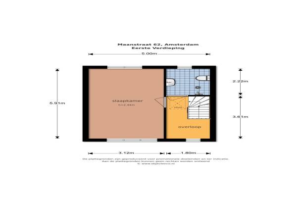 Het adres van deze woning uit 1922 is Maanstraat 62 te Amsterdam. Het pand heeft een oppervlakte van 71m² en een perceeloppervlakte van 106m² en heeft 2 kamers kamers waarvan 1 slaapkamers. De geschatte waarde van deze woning is € 300.000.
