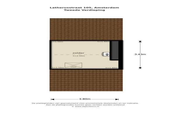 Het adres van deze woning uit 1931 is Latherusstraat 105 te Amsterdam. Het pand heeft een oppervlakte van 113m² en een perceeloppervlakte van 158m² en heeft 4 kamers kamers waarvan 3 slaapkamers. De geschatte waarde van deze woning is € 525.000.