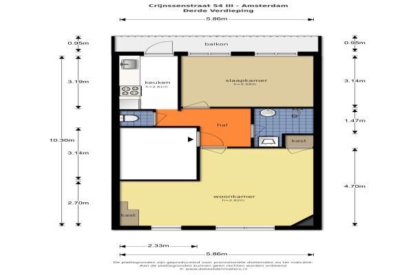 Het adres van deze woning uit 1927 is Crynssenstraat 54 te Amsterdam. Het pand heeft een oppervlakte van 53m² en heeft 2 kamers kamers waarvan 1 slaapkamers. De geschatte waarde van deze woning is € 300.000.