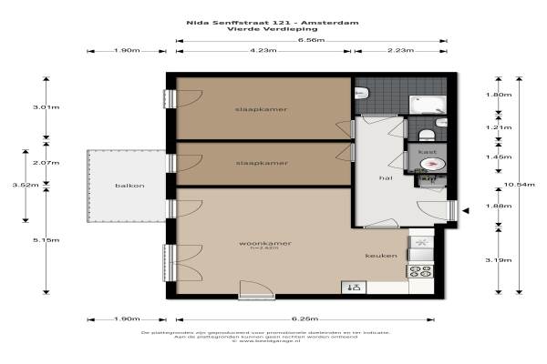 Het adres van deze woning uit 2016 is Nida Senffstraat 121 te Amsterdam. Het pand heeft een oppervlakte van 69m² en heeft 3 kamers kamers waarvan 2 slaapkamers. De geschatte waarde van deze woning is € 350.000.