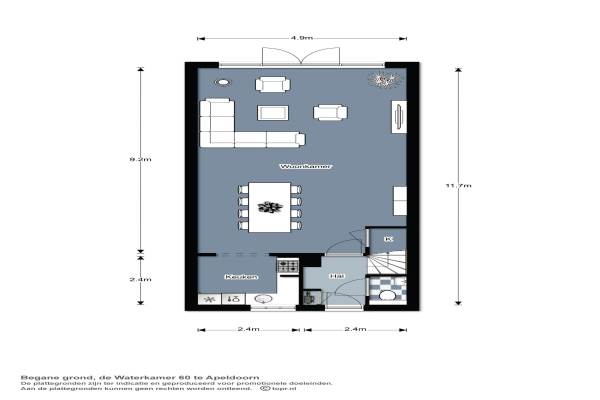 Het adres van deze woning uit 2000 is De Waterkamer 60 te Apeldoorn. Het pand heeft een oppervlakte van 124m² en een perceeloppervlakte van 121m² en heeft 5 kamers kamers waarvan 4 slaapkamers. De geschatte waarde van deze woning is € 249.000.
