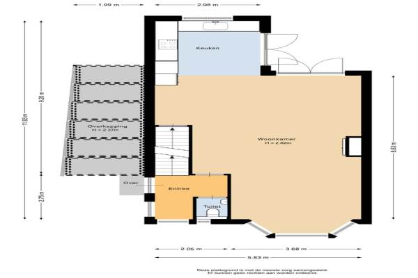 88 m² (11,00 meter diep en 8,00 meter breed)