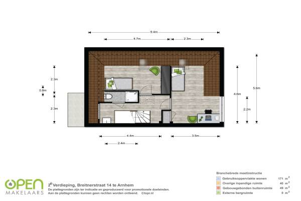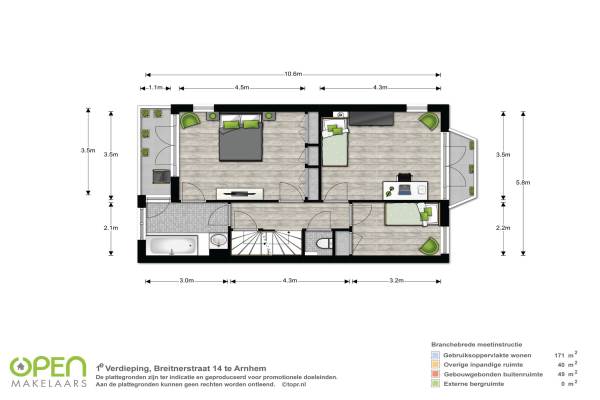 Het adres van deze woning uit 1935 is Breitnerstraat 14 te Arnhem. Het pand heeft een oppervlakte van 171m² en een perceeloppervlakte van 378m² en heeft 6 kamers kamers waarvan 5 slaapkamers. De geschatte waarde van deze woning is € 569.000.