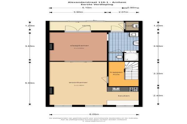 Het adres van deze woning uit 1910 is Alexanderstraat 110 te Arnhem. Het pand heeft een oppervlakte van 61m² en heeft 2 kamers kamers waarvan 1 slaapkamers. De geschatte waarde van deze woning is € 139.500.