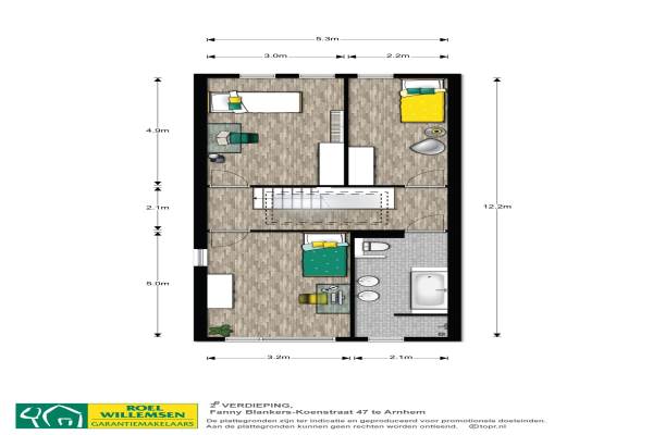 Het adres van deze woning uit 2006 is Fanny Blankers-Koenstraat 47 te Arnhem. Het pand heeft een oppervlakte van 167m² en een perceeloppervlakte van 134m² en heeft 5 kamers kamers waarvan 4 slaapkamers. De geschatte waarde van deze woning is € 375.000.