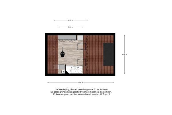 Het adres van deze woning uit 1991 is Rosa Luxemburgstraat 21 te Arnhem. Het pand heeft een oppervlakte van 103m² en een perceeloppervlakte van 135m² en heeft 5 kamers kamers waarvan 3 slaapkamers. De geschatte waarde van deze woning is € 325.000.