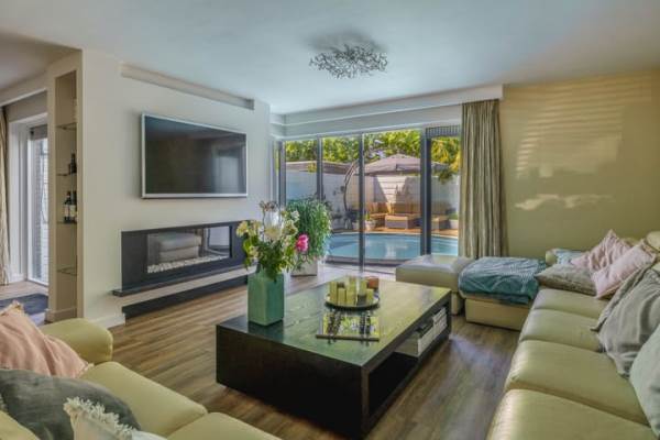 Achtertuin, tuin rondom, voortuin en zonneterras