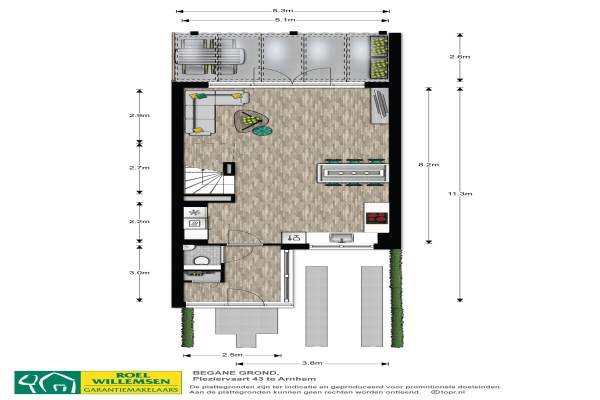 Het adres van deze woning uit 2011 is Pleziervaart 43 te Arnhem. Het pand heeft een oppervlakte van 120m² en een perceeloppervlakte van 138m² en heeft 5 kamers kamers waarvan 4 slaapkamers. De geschatte waarde van deze woning is € 239.000.