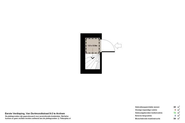 Het adres van deze woning uit 1910 is Van Dortmondtstraat 9B te ARNHEM. Het pand heeft een oppervlakte van 42m² en heeft 2 kamers kamers waarvan 1 slaapkamers. De geschatte waarde van deze woning is € 185.000.