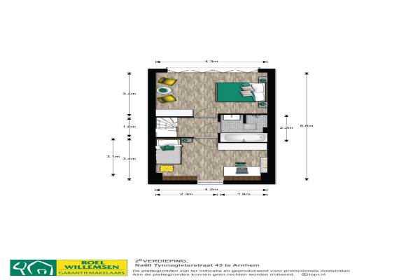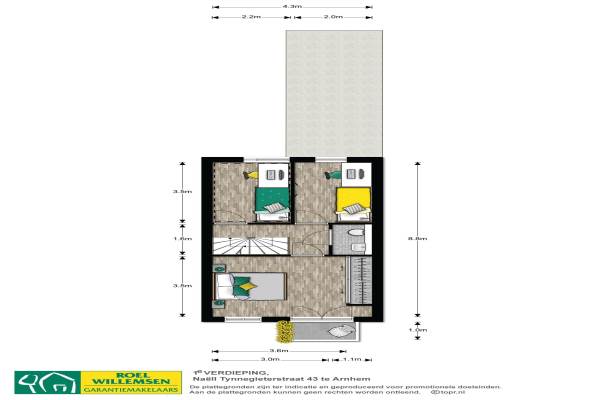 Het adres van deze woning uit 1906 is Naëll Tynnegieterstraat 43 te Arnhem. Het pand heeft een oppervlakte van 129m² en een perceeloppervlakte van 109m² en heeft 6 kamers kamers waarvan 5 slaapkamers. De geschatte waarde van deze woning is € 400.000.