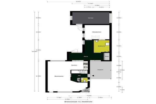 Het adres van deze woning uit 1988 is Braamstraat 13 te Nistelrode. Het pand heeft een oppervlakte van 132m² en een perceeloppervlakte van 229m² en heeft 7 kamers kamers waarvan 3 slaapkamers. De geschatte waarde van deze woning is € 265.000.