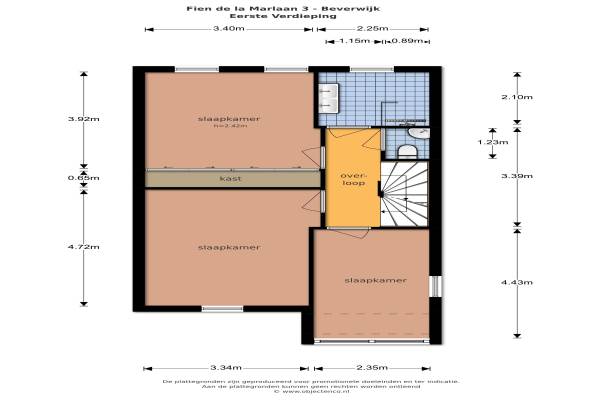 Het adres van deze woning uit 2002 is Fien de la Marlaan 3 te Beverwijk. Het pand heeft een oppervlakte van 160m² en een perceeloppervlakte van 307m² en heeft 5 kamers kamers waarvan 4 slaapkamers. De geschatte waarde van deze woning is € 475.000.