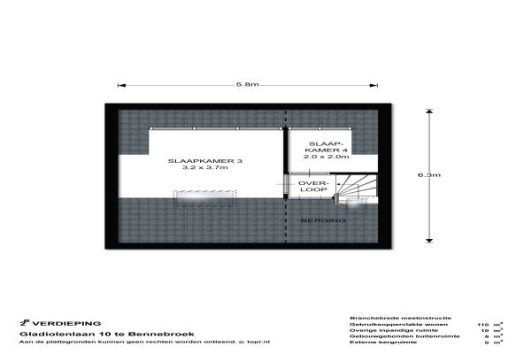 Het adres van deze woning uit 1961 is Gladiolenlaan 10 te Bennebroek. Het pand heeft een oppervlakte van 110m² en een perceeloppervlakte van 216m² en heeft 5 kamers kamers waarvan 4 slaapkamers. De geschatte waarde van deze woning is € 395.000.