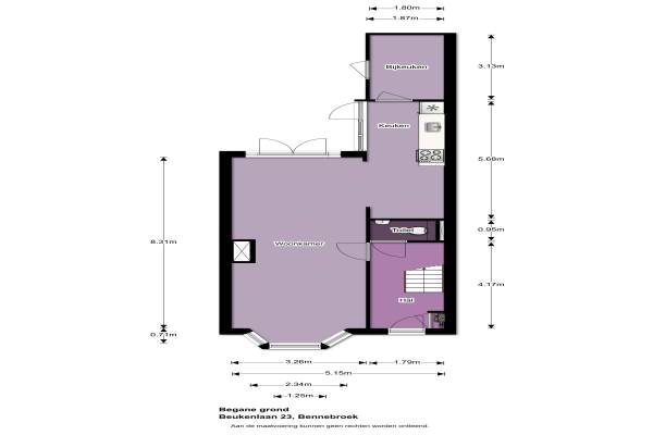 Het adres van deze woning uit 1934 is Beukenlaan 23 te Bennebroek. Het pand heeft een oppervlakte van 113m² en een perceeloppervlakte van 175m² en heeft 5 kamers kamers waarvan 3 slaapkamers. De geschatte waarde van deze woning is € 399.000.