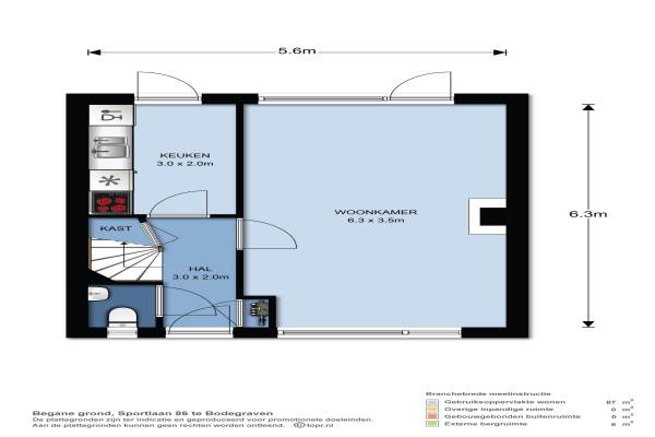 Het adres van deze woning uit 1962 is Sportlaan 86 te Bodegraven. Het pand heeft een oppervlakte van 90m² en een perceeloppervlakte van 135m² en heeft 5 kamers kamers waarvan 4 slaapkamers. De geschatte waarde van deze woning is € 225.000.