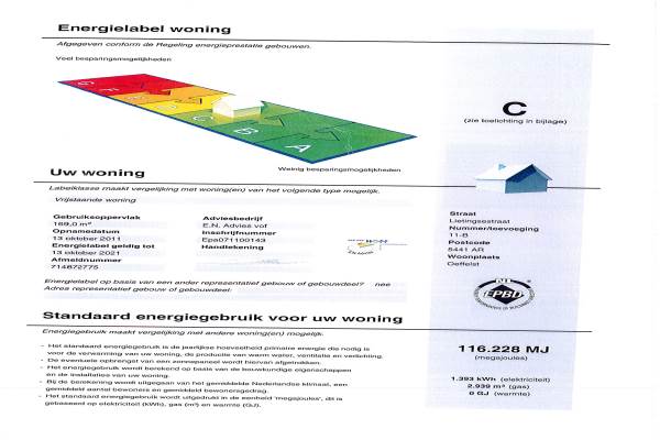 Het adres van deze woning uit 1970 is Lietingsestraat 11B te Oeffelt. Het pand heeft een oppervlakte van 121m² en een perceeloppervlakte van 396m² en heeft 5 kamers kamers waarvan 3 slaapkamers. De geschatte waarde van deze woning is € 259.000.