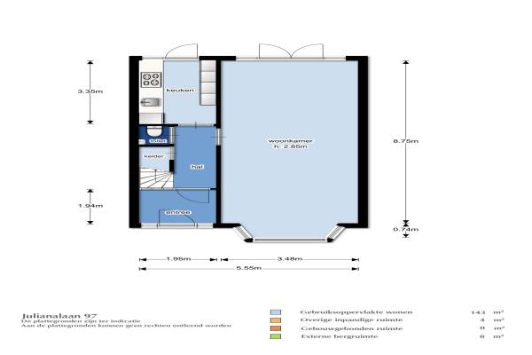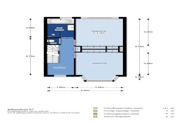 Het adres van deze woning uit 1938 is Julianalaan 97 te Breda. Het pand heeft een oppervlakte van 143m² en een perceeloppervlakte van 173m² en heeft 4 kamers kamers waarvan 3 slaapkamers. De geschatte waarde van deze woning is € 539.000.