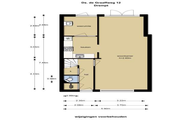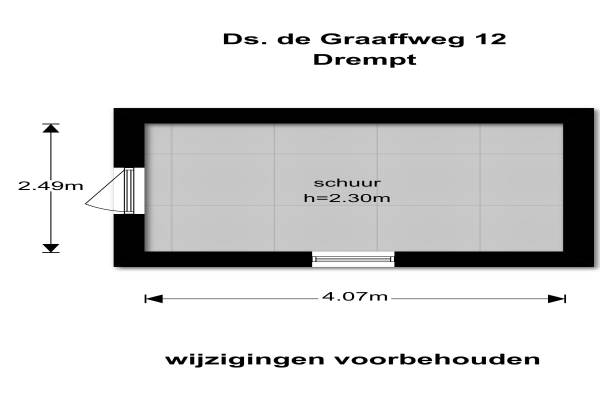 Het adres van deze woning uit 1967 is Ds. de Graaffweg 12 te Drempt. Het pand heeft een oppervlakte van 118m² en een perceeloppervlakte van 190m² en heeft 4 kamers kamers waarvan 3 slaapkamers. De geschatte waarde van deze woning is € 149.500.
