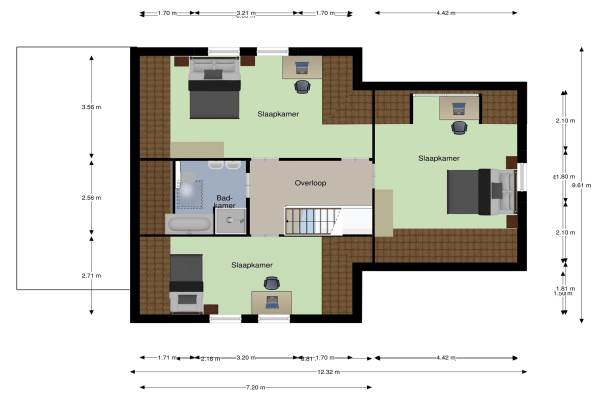 2 badkamers en 2 aparte toiletten