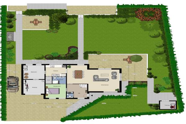 Achtertuin, voortuin, zijtuin en zonneterras