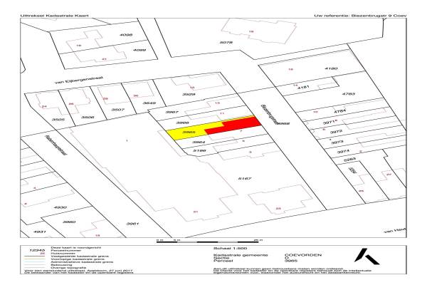 Het adres van deze woning uit 1910 is Biezenbrugstraat 9 te Coevorden. Het pand heeft een oppervlakte van 81m² en een perceeloppervlakte van 123m² en heeft 5 kamers kamers waarvan 2 slaapkamers. De geschatte waarde van deze woning is € 159.500.