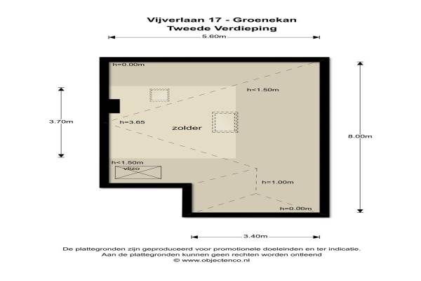 Het adres van deze woning uit 1924 is Vijverlaan 17 te Groenekan. Het pand heeft een oppervlakte van 99m² en een perceeloppervlakte van 358m² en heeft 6 kamers kamers waarvan 4 slaapkamers. De geschatte waarde van deze woning is € 550.000.