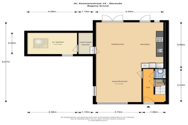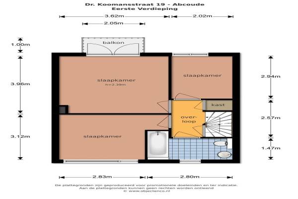 Het adres van deze woning uit 1960 is Dokter Koomansstraat 19 te Abcoude. Het pand heeft een oppervlakte van 132m² en een perceeloppervlakte van 262m² en heeft 6 kamers kamers waarvan 4 slaapkamers. De geschatte waarde van deze woning is € 485.000.