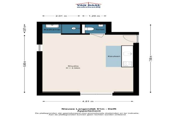 Het adres van deze woning uit 1852 is Nieuwe Langendijk 61M te Delft. Het pand heeft een oppervlakte van 35m² en heeft 1 kamers kamers waarvan 1 slaapkamers. De geschatte waarde van deze woning is € 249.000.