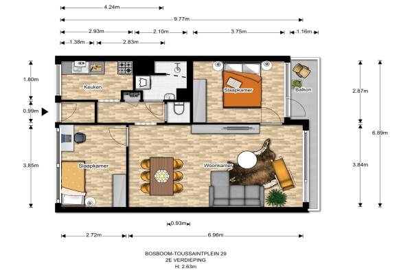 Het adres van deze woning uit 1966 is Bosboom-Toussaintplein 29 te Delft. Het pand heeft een oppervlakte van 66m² en heeft 3 kamers kamers waarvan 2 slaapkamers. De geschatte waarde van deze woning is € 135.000.