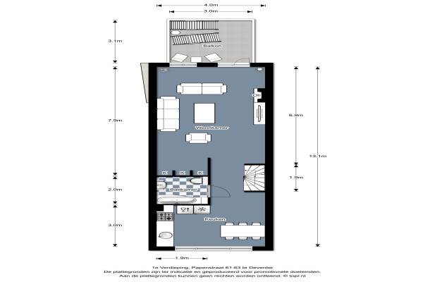 Het adres van deze woning uit 1800 is Papenstraat 61 te Deventer. Het pand heeft 4 kamers kamers waarvan 2 slaapkamers. De geschatte waarde van deze woning is € 295.000.