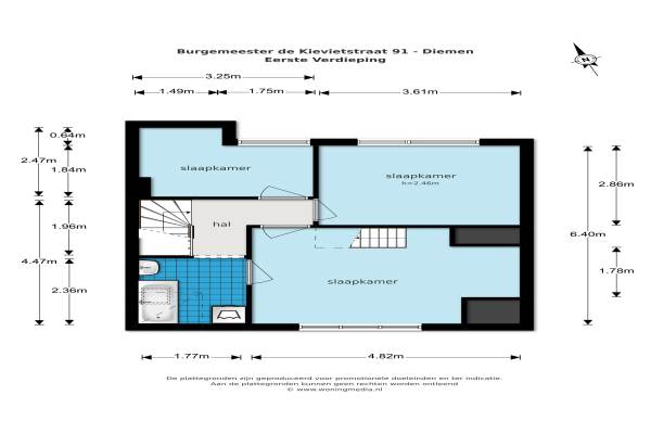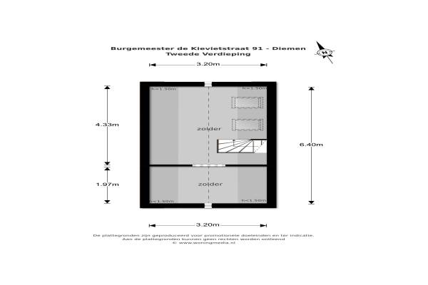 Het adres van deze woning uit 1931 is Burgemeester de Kievietstraat 91 te Diemen. Het pand heeft een oppervlakte van 98m² en een perceeloppervlakte van 62m² en heeft 5 kamers kamers waarvan 3 slaapkamers. De geschatte waarde van deze woning is € 375.000.