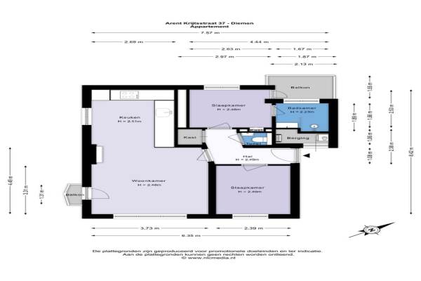 Het adres van deze woning uit 1955 is Arent Krijtsstraat 37I te Diemen. Het pand heeft een oppervlakte van 54m² en heeft 3 kamers kamers waarvan 2 slaapkamers. De geschatte waarde van deze woning is € 375.000.