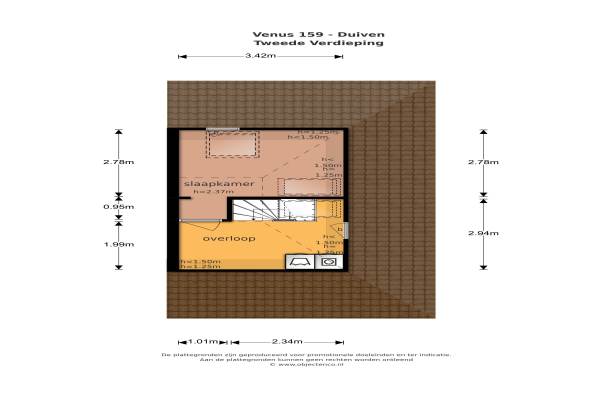 Het adres van deze woning uit 1993 is Venus 159 te Duiven. Het pand heeft een oppervlakte van 112m² en een perceeloppervlakte van 274m² en heeft 5 kamers kamers waarvan 4 slaapkamers. De geschatte waarde van deze woning is € 269.000.