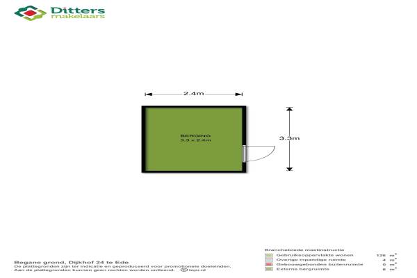 Het adres van deze woning uit 1976 is Dijkhof 24 te Ede. Het pand heeft een oppervlakte van 126m² en een perceeloppervlakte van 177m² en heeft 6 kamers kamers waarvan 5 slaapkamers. De geschatte waarde van deze woning is € 235.000.