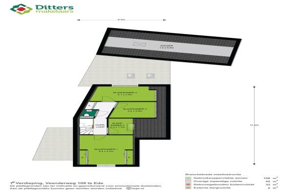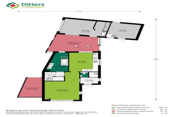 Het adres van deze woning uit 1930 is Veenderweg 108 te Ede. Het pand heeft een oppervlakte van 108m² en een perceeloppervlakte van 296m² en heeft 5 kamers kamers waarvan 4 slaapkamers. De geschatte waarde van deze woning is € 428.500.