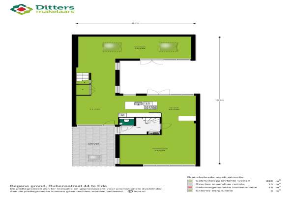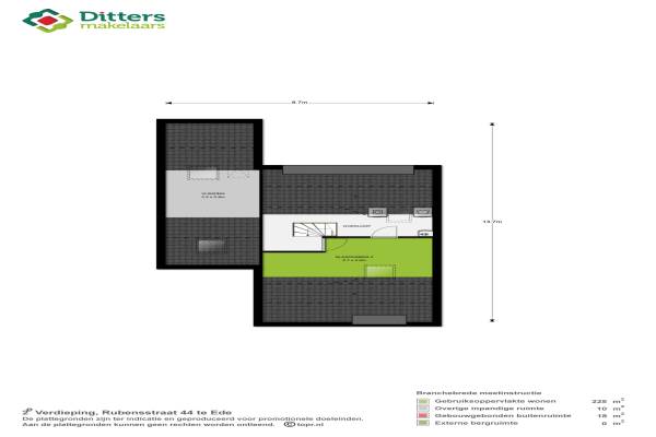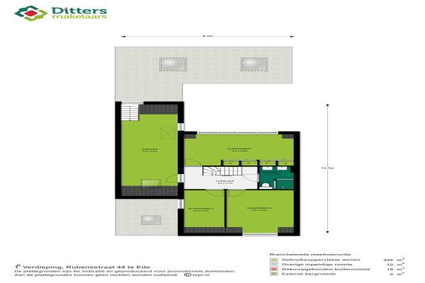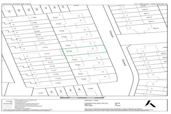 Het adres van deze woning uit 1989 is Rubensstraat 44 te Ede. Het pand heeft een oppervlakte van 225m² en een perceeloppervlakte van 225m² en heeft 7 kamers kamers waarvan 5 slaapkamers. De geschatte waarde van deze woning is € 415.000.