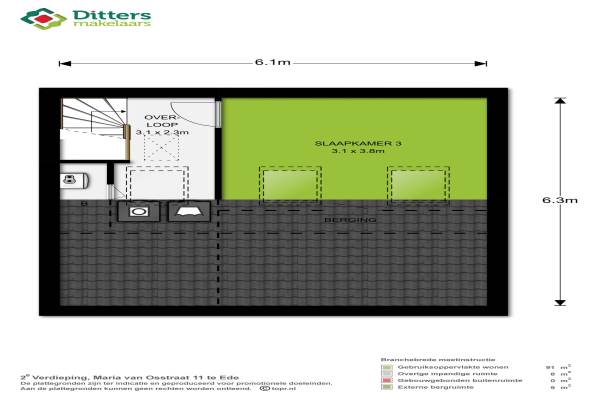 Het adres van deze woning uit 1984 is Maria van Osstraat 11 te Ede. Het pand heeft een oppervlakte van 91m² en een perceeloppervlakte van 86m² en heeft 4 kamers kamers waarvan 3 slaapkamers. De geschatte waarde van deze woning is € 195.000.