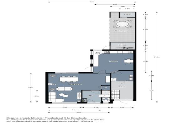 Het adres van deze woning uit 1954 is Minister Treubstraat 6 te Enschede. Het pand heeft een oppervlakte van 146m² en een perceeloppervlakte van 351m² en heeft 6 kamers kamers waarvan 5 slaapkamers. De geschatte waarde van deze woning is € 338.000.
