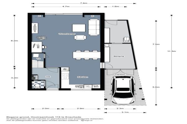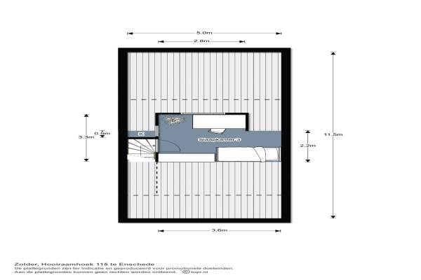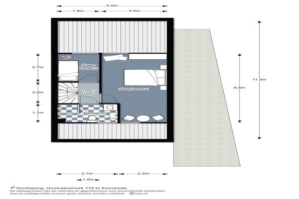 Het adres van deze woning uit 1991 is Hooiraamhoek 115 te Enschede. Het pand heeft een oppervlakte van 104m² en een perceeloppervlakte van 184m² en heeft 4 kamers kamers waarvan 3 slaapkamers. De geschatte waarde van deze woning is € 210.000.