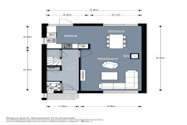 Het adres van deze woning uit 1978 is Operastraat 79 te Enschede. Het pand heeft een oppervlakte van 121m² en een perceeloppervlakte van 146m² en heeft 5 kamers kamers waarvan 4 slaapkamers. De geschatte waarde van deze woning is € 168.000.