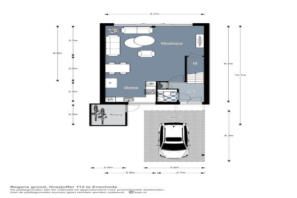 Het adres van deze woning uit 2007 is Grasjuffer 112 te Enschede. Het pand heeft een oppervlakte van 144m² en een perceeloppervlakte van 151m² en heeft 5 kamers kamers waarvan 3 slaapkamers. De geschatte waarde van deze woning is € 245.000.