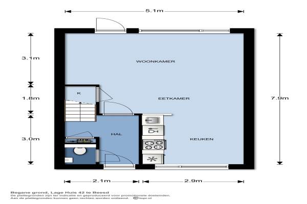 Het adres van deze woning uit 1997 is Lage Huis 42 te Beesd. Het pand heeft een oppervlakte van 103m² en een perceeloppervlakte van 138m² en heeft 4 kamers kamers waarvan 3 slaapkamers. De geschatte waarde van deze woning is € 246.000.