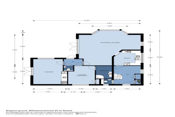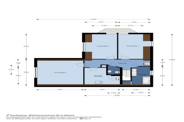 Het adres van deze woning uit 2004 is Wilhelminastraat 65 te Beesd. Het pand heeft een oppervlakte van 213m² en een perceeloppervlakte van 357m² en heeft 8 kamers kamers waarvan 4 slaapkamers. De geschatte waarde van deze woning is € 539.000.