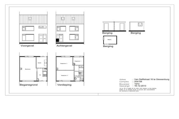 Het adres van deze woning uit 1970 is van Delftstraat 16 te Giessenburg. Het pand heeft een oppervlakte van 100m² en een perceeloppervlakte van 162m² en heeft 4 kamers kamers. De geschatte waarde van deze woning is € 179.000.