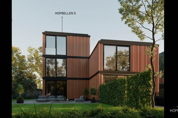 Het adres van deze woning uit 2022 is Hopbellen 5 te Muiden. Het pand heeft een oppervlakte van 213m² en een perceeloppervlakte van 277m² en heeft 6 kamers kamers waarvan 4 slaapkamers. De geschatte waarde van deze woning is € 1.545.000.