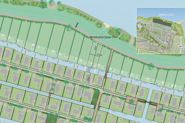 Het adres van deze woning uit 2024 is Westbatterijlaan 20 te Muiden. Het pand heeft een oppervlakte van 296m² en een perceeloppervlakte van 1102m² en heeft 11 kamers kamers waarvan 6 slaapkamers. De geschatte waarde van deze woning is € 2.775.000.